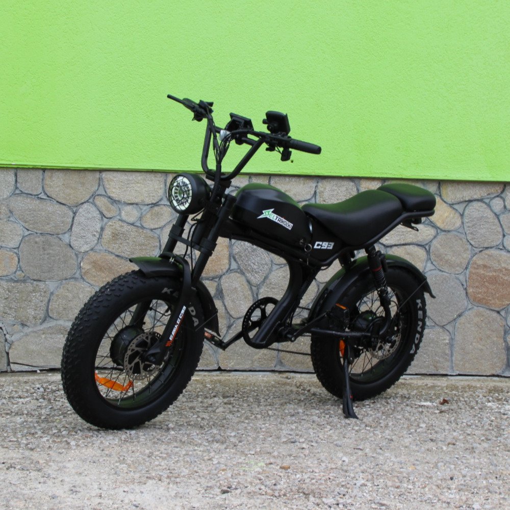 C93 Dual Motor е електрически велосипед (e-bike) с мощна конфигурация и агресивен офроуд стил, който съчетава функционалност на велосипед с усещане за лек мопед-байк. Идеален е както за градски пътувания, така и за приключения извън асфалта.
